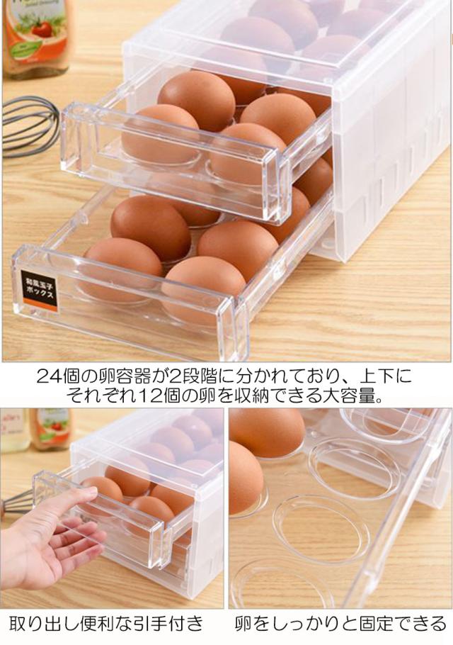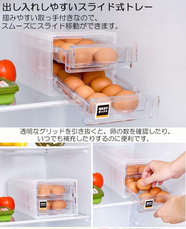 卵ケース 冷蔵庫 引き出し 3個セット 卵入れ 冷蔵庫用 卵ボックス 卵収納 卵容器 エッグホルダー 24個収納 大容量 クリア 透明ボックス 卵容器 収納 ホルダー アウトドア たまごケース