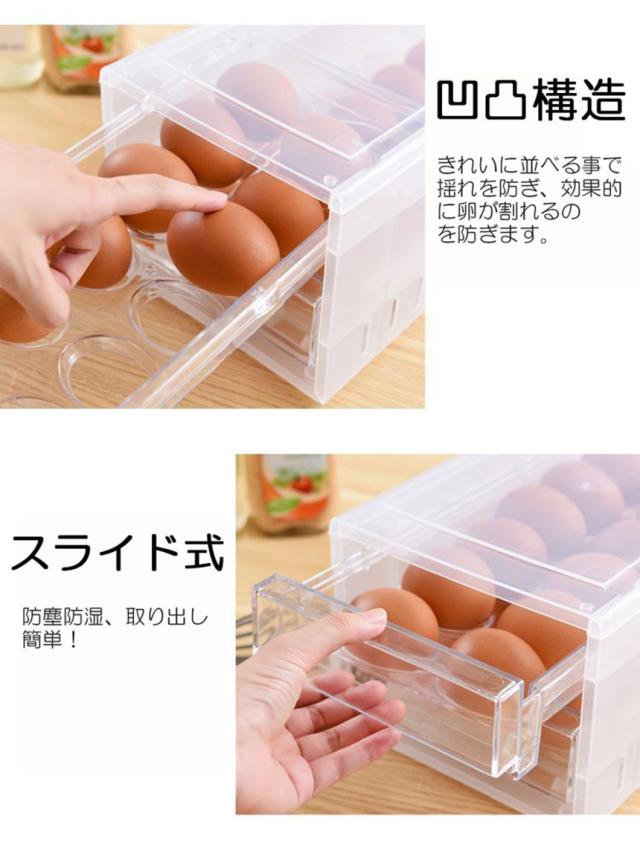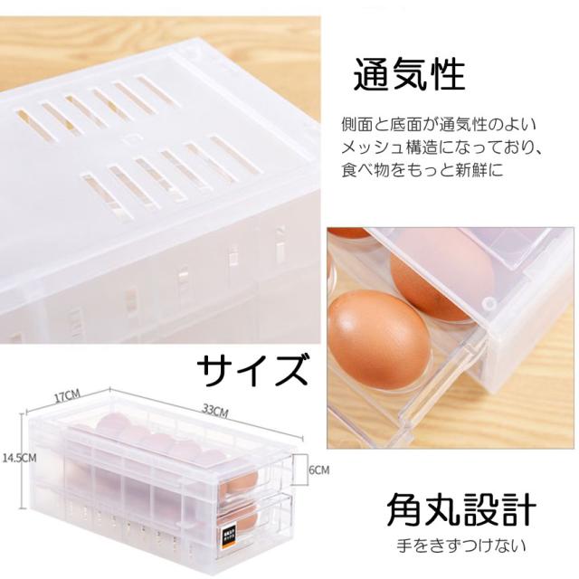 【使いやすい】冷蔵庫用 卵ボックス 取り出しやすい:ダブルドロワータイプで取り出しやすいです。引き出し式の卵収納ボックスは、冷蔵庫の占有スペースを減らすことができます。通常の卵ボックスはより強力です。卵を折ったり壊したりする心配はありません。