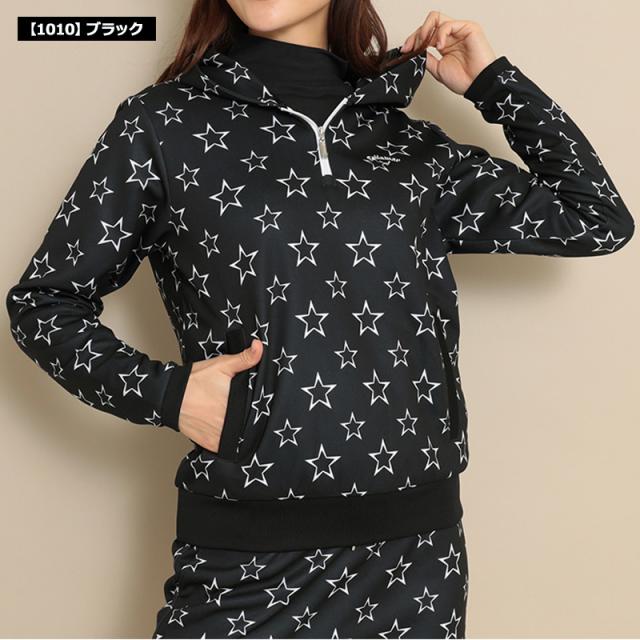 星柄プリントのハーフジップパーカー