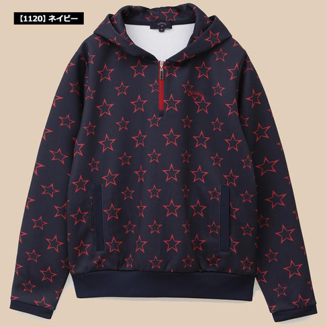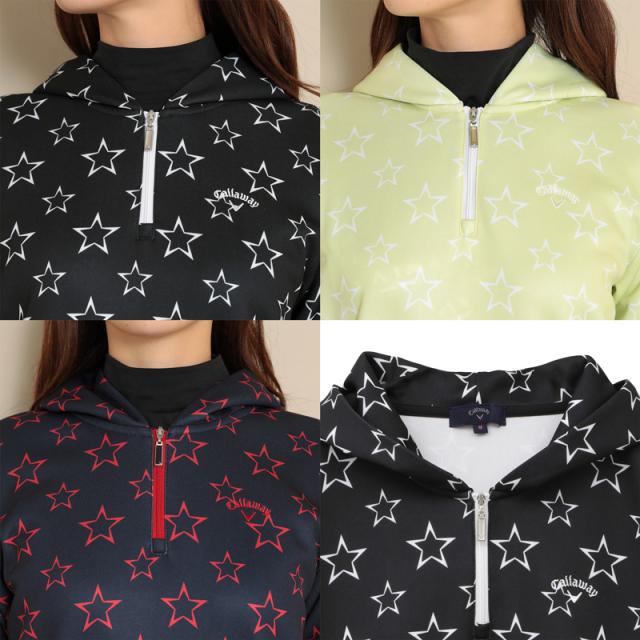 キャロウェイ レディース ハーフジップパーカー ダンボールニット 星柄 C22217202 【新品】RCBR Callaway スター柄 長袖 フーディー ゴルフウェア レディス