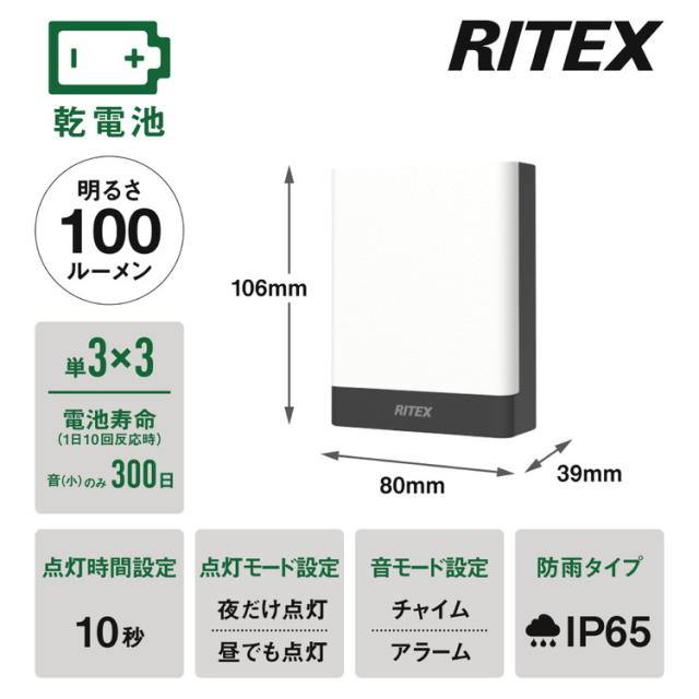 ムサシ RITEX ライテックス 乾電池式無線連動チャイム&ライト 受信型 W-650 musashi 屋外 防犯ライト 庭 玄関 ガレージ 駐車場 つながる無線連動 最大16台(代引不可)【送料無料】