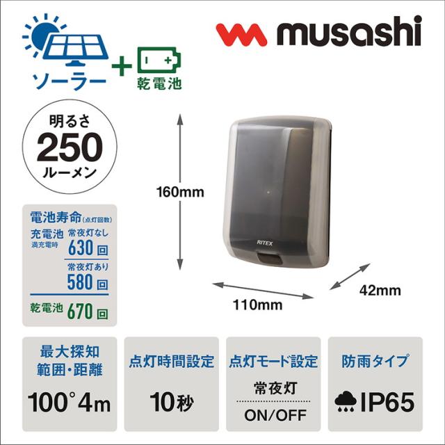 ムサシ 屋外 防犯 人感センサーライト どこでもハイブリッドソーラーライト3W 角型 SWL-HB101 防犯ライト ソーラー発電/乾電池式 自動切替 コンパクト 小型ライト 玄関灯 LEDライト(代引不可)【送料無料】