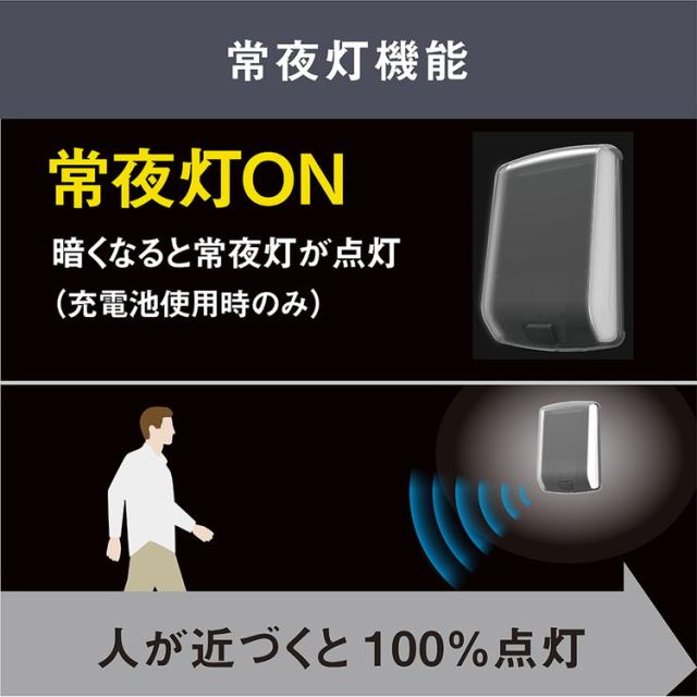 電池寿命:充電池・春夏秋 平均約90回・冬 平均約60回 満充電時約630回(常夜灯なしの時)/乾電池春夏秋 平均約55回・冬 平均約25回 満充電時約580回(常夜灯ありの時)