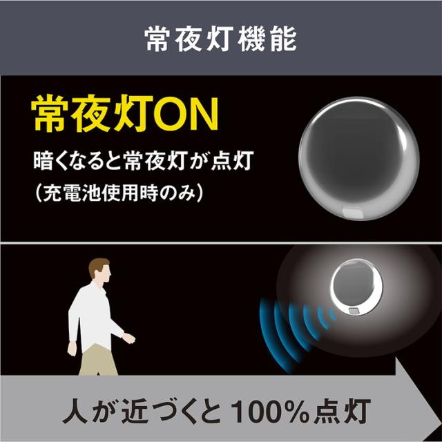 電池寿命:充電池・春夏秋 平均約90回・冬 平均約60回 満充電時約630回(常夜灯なしの時)/乾電池春夏秋 平均約55回・冬 平均約25回 満充電時約580回(常夜灯ありの時)