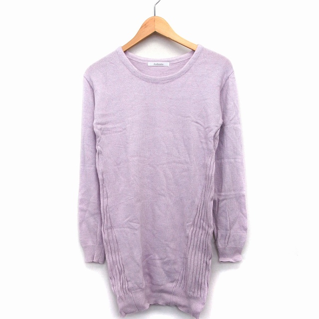 【中古】アンデミュウ Andemiu ニット ワンピース Iライン 膝丈 長袖 丸首 ラメ混 リブ アンゴラ混 ラベンダー 紫