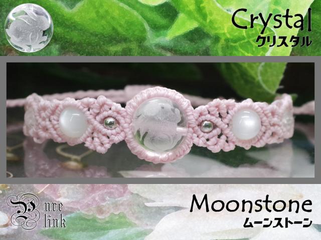『ムーンストーン』と干支・癸卯『水晶』ウサギ彫マクラメ編みハンドメイドブレス