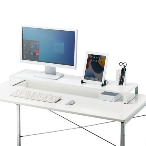 ●横幅1000mmながらスチール製の丈夫な作りなので、フレーム左右2本で支えることができ、液晶ディスプレイ下の空間をより広く使うことができます。