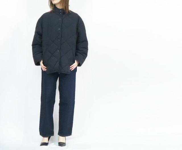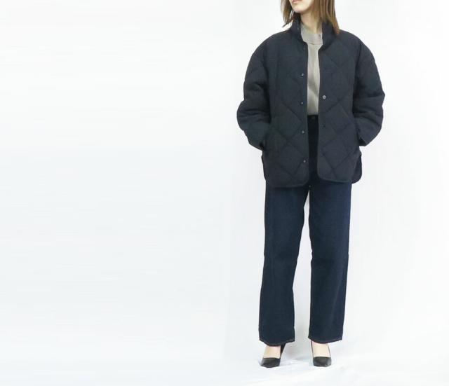キルティング調の風合いとスタンドカラーのショートジャケットデザインが特徴です。