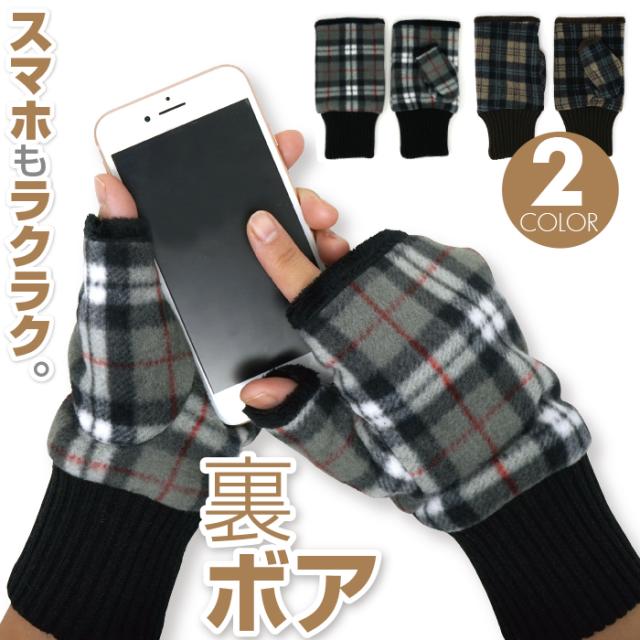 ハンドウォーマー アームウォーマー レディース メンズ モコモコ 指なし手袋 暖かい スマホ おしゃれ ふわモコ 裏ボア タータンチェック柄 全2色 送料無料 2022 冬 プレゼント ギフト