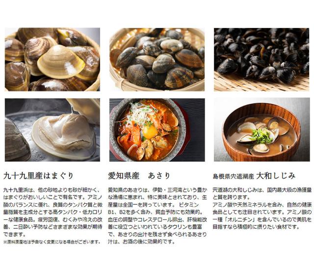 原材料名:蛤(千葉県産)、発酵調味料(米、米麹、食塩)、白だし/調味料(アミノ酸等)、酒精(一部に小麦・大豆を含む)