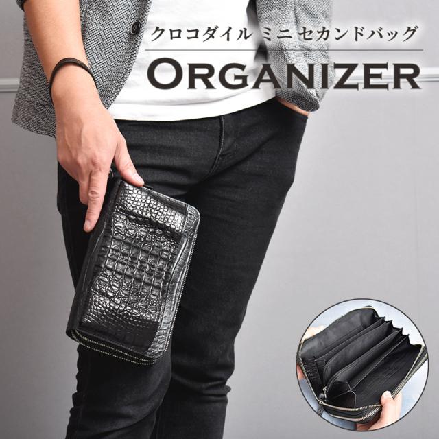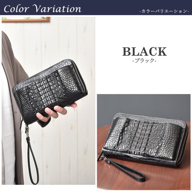 お財布バッグ メンズ クロコダイル 本革 長財布 オーガナイザー 牛革 型押し 財布 大きめ ワニ革 ダブルファスナー ブラック 大容量 クラッチバッグ 背ワニ レザー スマホ収納 軽い 手提げ 鰐革 軽量 男性 紳士 人気 金運 開運 一粒万倍日 プレゼント 送料無料