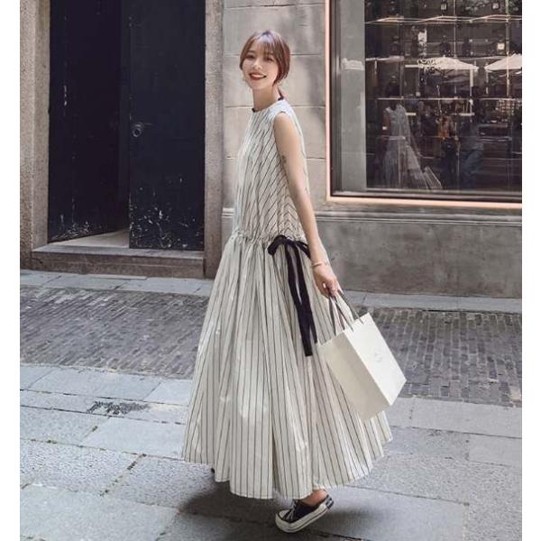 ワンピース レディース マキシ丈 スカート ロング ストライプ柄 フレア Aライン ノースリーブ キャザー ママ カジュアル 大人かわいい 春 夏 20代 30代