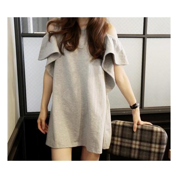 ワンピース チュニック ショート丈 ミニ丈 ノースリーブ オフショルダーワンピース ラッフルスリーブ トップス 大人かわいい 肩出し トレンド カジュアル