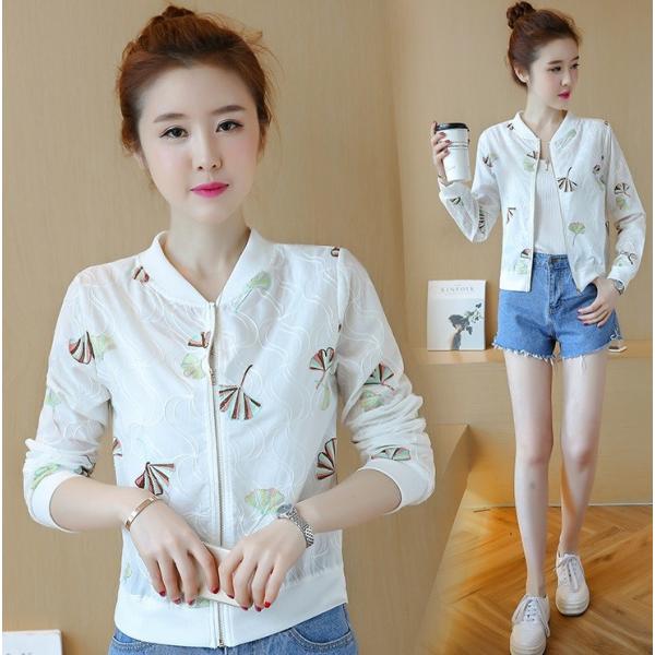 ジャケット アウター 春 夏 刺しゅう 刺繍 襟無し トップス ジッパー シンプル 薄手 爽やか デイリー 普段使い 通勤 通学 人気 送料無料