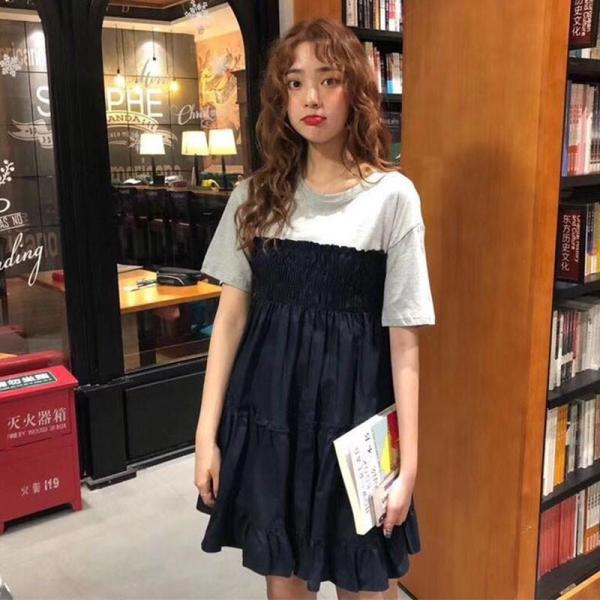 【 ゆったりシルエットでリラックス♪ドッキング半袖ワンピース 】