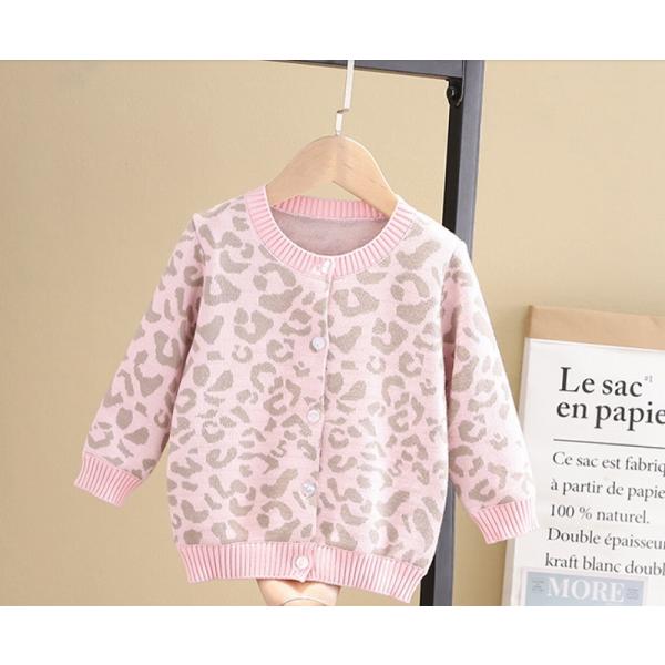 トップス カーディガン キッズ ニット 子ども ヒョウ柄 総柄 春 秋 冬 かわいい シンプル カジュアル お出かけ セーター 人気 送料無料