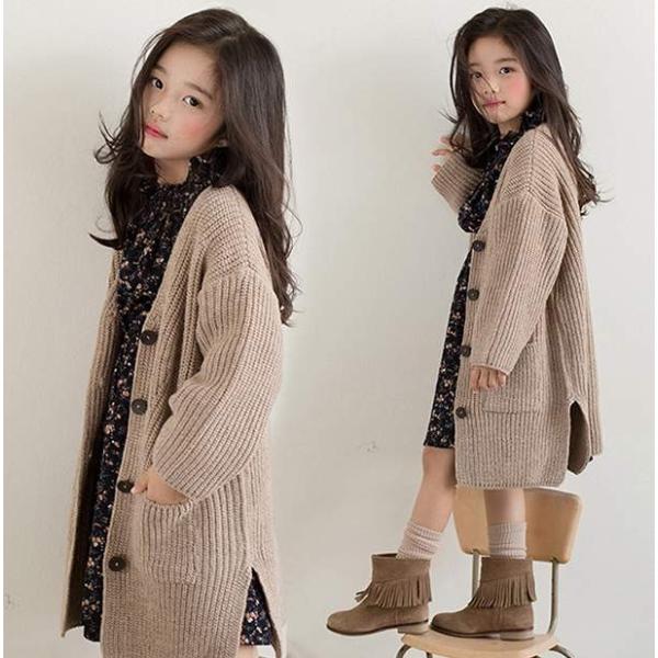 カーディガン 女の子 アウター コーディガン 羽織り ロング丈 ロングカーデ ナチュラル 子ども キッズ ジュニア 春 秋 人気商品 送料無料