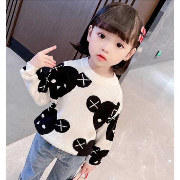 トップス ニット 子ども キッズ 子供 セーター クマ柄 女の子 男の子 クマ ラウンドネック プルオーバー 春 秋 冬 可愛い お出かけ 熊 通園 通学 小学生 幼稚園 保育園 韓国子供服