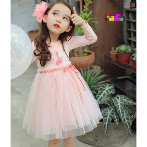 ワンピース 女の子 子供服 キッズ チュール スカート メッシュ スカート チュチュ レース ひざ丈 リボン 綿 子供ドレス 長袖 発表会 結婚式 普段着 プリンセス お姫様 かわいい おしゃれ グリーン ピンク 100cm 110cm 120cm 130cm 140cm 春 秋