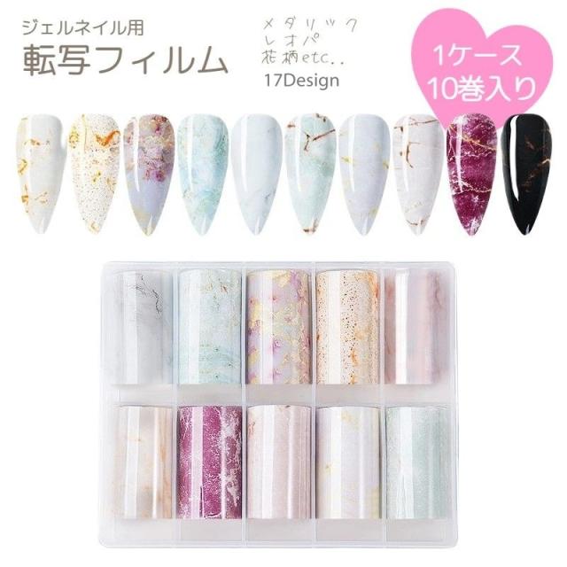 転写フィルム 1箱10巻入り 4cm幅 1m 100cm ジェルネイル用 転写ホイル 転写シート プリントシート パターンシート