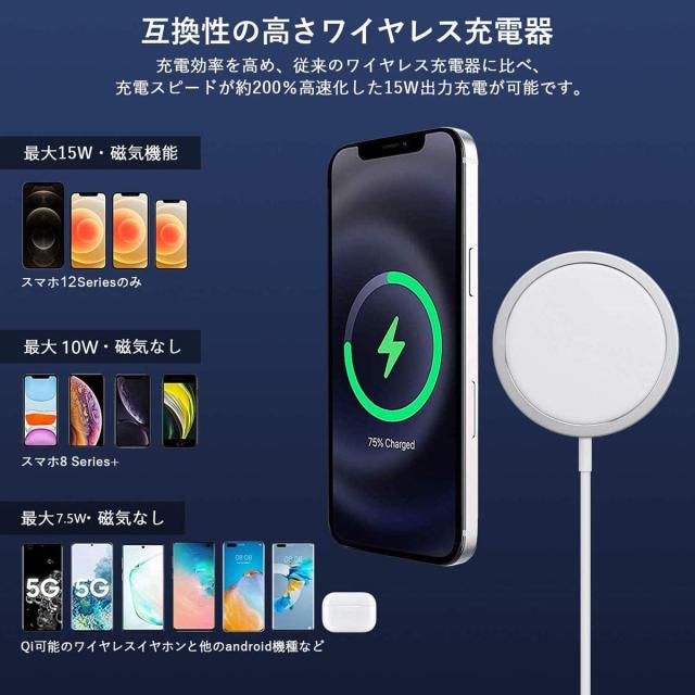 ワイヤレス充電器 マグネット式15W出力 QI for iPhone 14/14pro/13/13 Pro/13 Pro Max/13 Mini/12/12 Pro/12 Pro Max/12 Mini Type-C