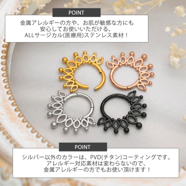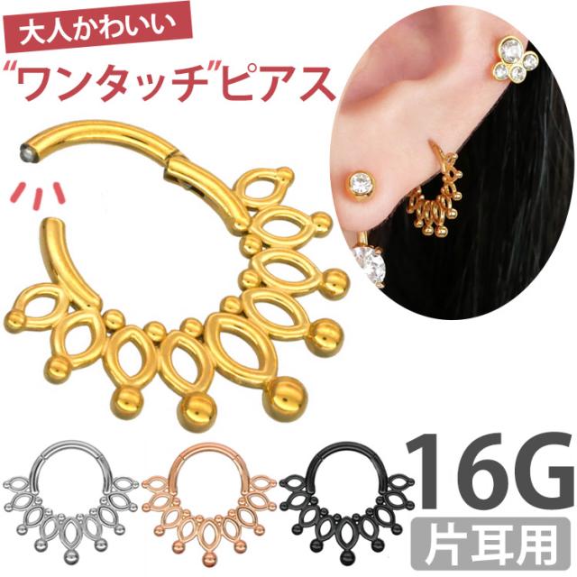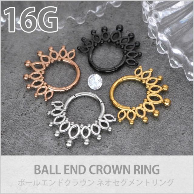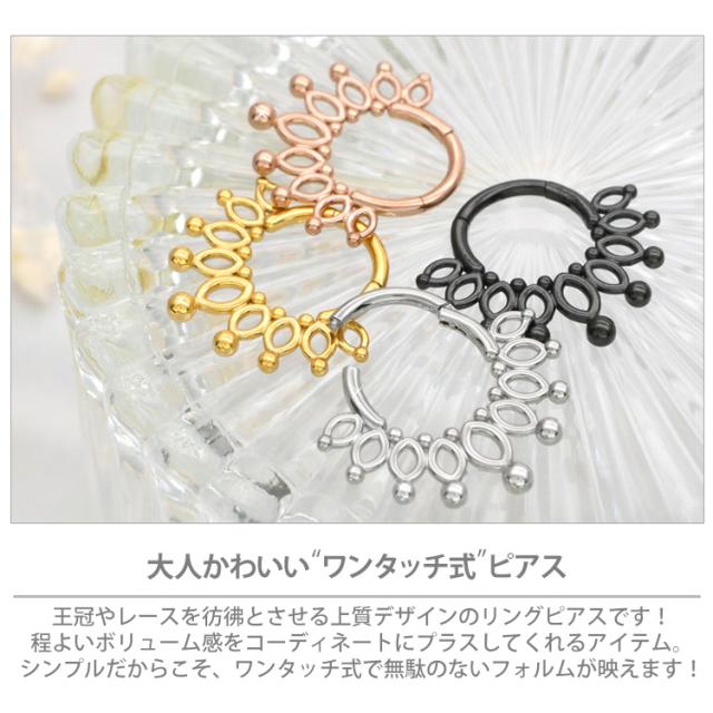 ボディピアス ワンタッチで装着 ボールエンドクラウンリング 16G ボディーピアス 軟骨ピアス ヘリックス