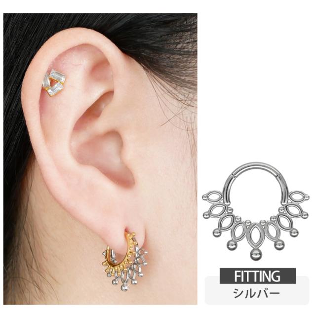 小さなボールが先端についたデザインが個性的なフープピアス。 コーデの主役になる高見えリングピアスです。 ヒンジで開け閉めできるキャッチ一体型のワンタッチ構造なので簡単で快適な使い心地です。 キャッチをなくす心配もない、不器用さんも安心のクリップリングです 服やシーンを選ばないシンプルデザインで、オシャレの幅が広がります。 アレルギーが起きにくいALLサージカル(医療用)ステンレス素材なので安心です。
