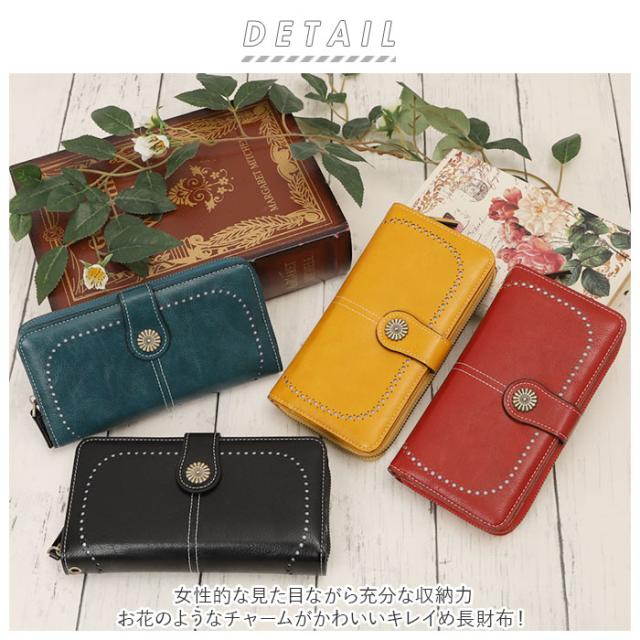| 商品説明 | ・女性的な見た目ながら充分な収納力。お花のようなチャームがかわいいキレイめ長財布! ・本革風のムラがあるPUレザーを生地に使用♪ ・ラウンドファスナーで大きく開くメイン収納部は、札入れ×2と小銭入れ×1を配置。 ・チャームのついたスナップボタンを開くと、左右合わせてカードポケット×13・フリーポケット×4付き。 ・多くなりがちなポイントカードや診察券等もすっきり分けて入れられる、大容量なカード収納が魅力♪ ・取り外し可能なハンドストラップが付属。 ・どんなファッションにも合わせやすいカラーバリエーション。 |