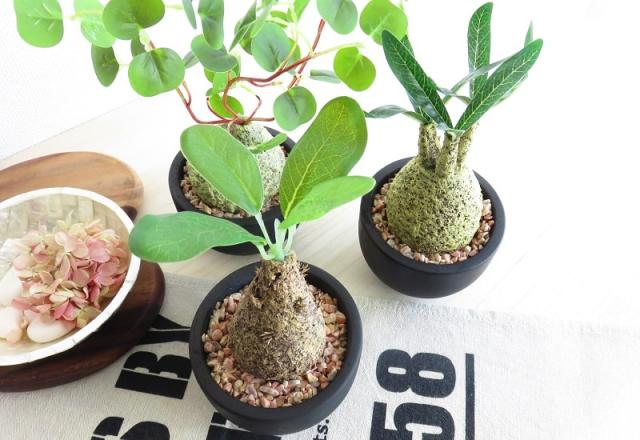 盆栽のように樹形を楽しむ魅力や、多肉のようにトレンドライクなインテリア性を兼ね備えたフェイクグリーン。稀少な品種も多く、高価で手が出せない…という方も多いコーデックス。もっと手軽に楽しんでもらおうと人気の高い3種類を再現。