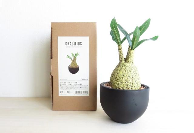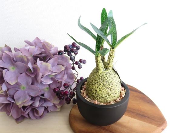 本来なら日光が大好きで屋外管理が基本の塊根植物も、水やりや日光を必要とせず手軽に飾ることができる。 |