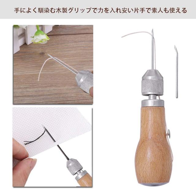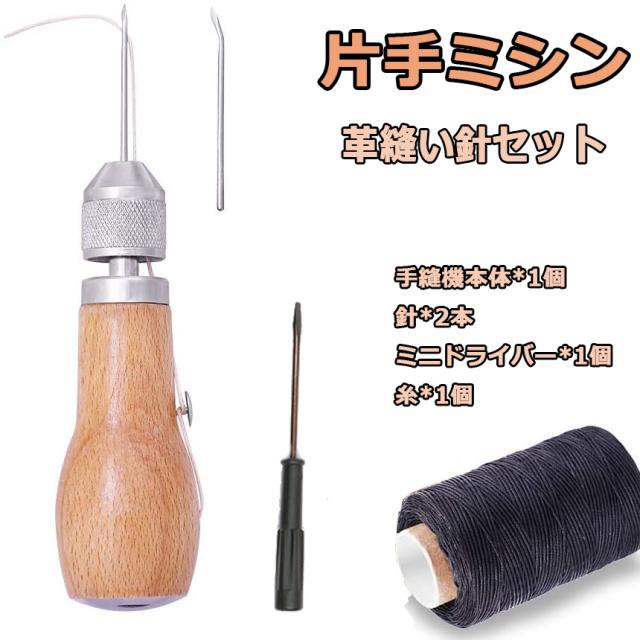 片手で縫える レザークラフト用 スピーディーステッチャー 手縫機 ハンドミシン 糸通し器 革縫い針セット 針2本入り 革用ミシン針 革工具 レザークラフト 縫製用 便利