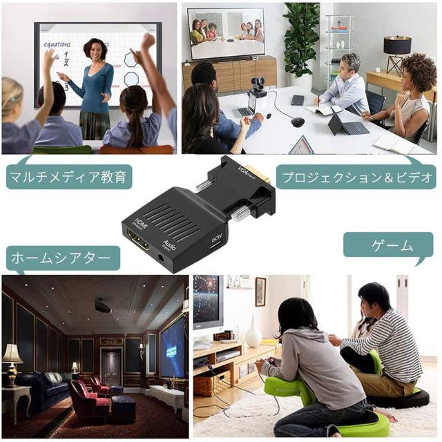 【VGA HDMIアダプター/コンバーター】VGA出力を備えた旧バージョンスタイリッシュなコンピューター/ラップトップを簡単に接続します。ビデオストリーミング、ゲームの再生、コンテンツの共有のためのHDMI入力を備えたテレビ、モニター、プロジェクターに接続できます。【ビデオとオーディオを同時にサポート】最大1080p(1920 x 1080 / 60Hz)までのフルHDビデオ解像度、24ビットをサポートし、3.5mmオスAUXミニジャックを介してステレオオーディオを送信します。