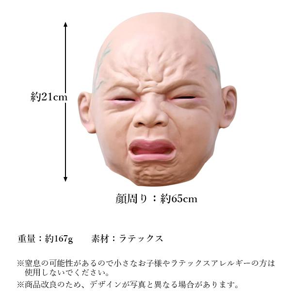 ・赤ちゃんのリアルな泣き顔のフルフェイスマスクです。