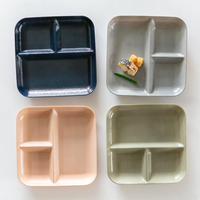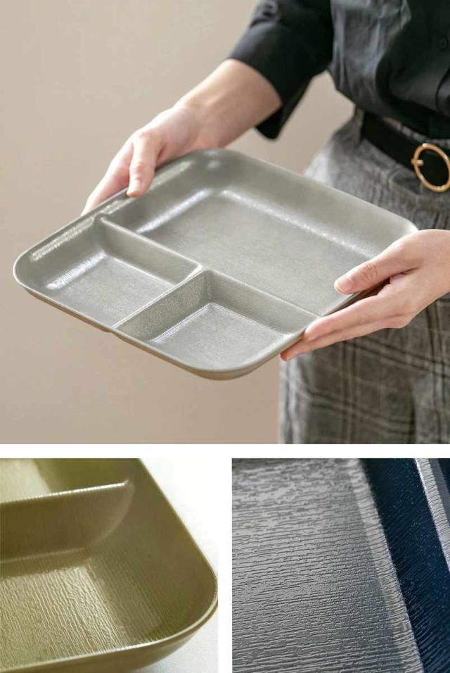 食卓に馴染む、くすみカラーのランチプレートです。落ち着いた雰囲気を備えつつ、盛り付けた食材が一層鮮やかに映えます。和食、洋食問わずに使えるのも嬉しいポイントです。仕切りがあるので、ご飯とおかずを分けて入れることができ、盛り付けが簡単です。一人分のお食事にちょうど良いサイズ感です。