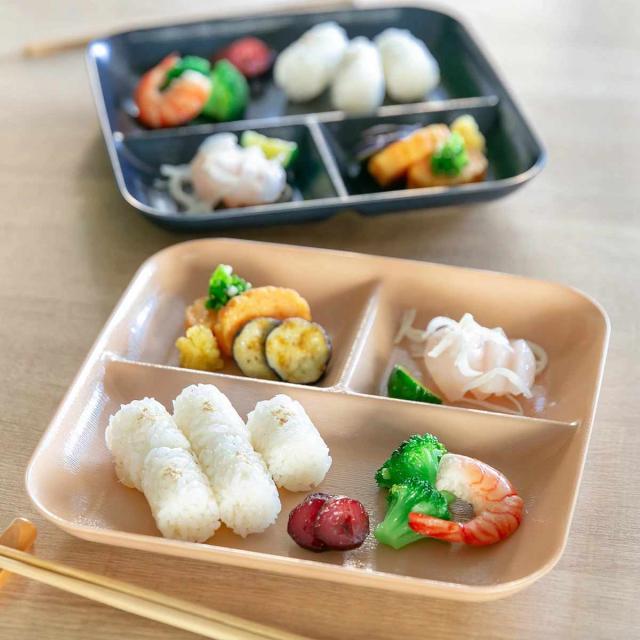 ランチプレート 24.5cm KUSUMI 木目調 ( 食洗器対応 電子レンジ対応 仕切り皿 皿 プラスチック製 日本製 仕切り付き 3つ仕切り 角形 軽い 割れにくい 撥水加工 アウトドア ワンプレート ランチ おしゃれ )