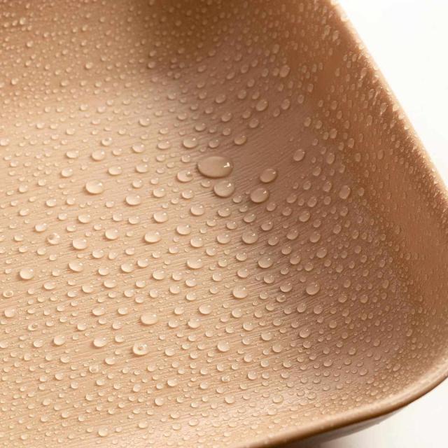 くすみクリヤー塗装は手作業の為、ひとつひとつ違った濃淡で優しくお料理を引き立てます。また、内側には撥水加工をほどこし、汚れ落ちが良く節水にもなるエコなアイテムです。