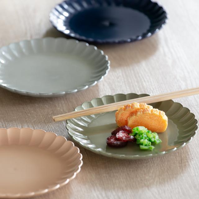食卓にふわりと咲く、お花型の取り皿です。くすみカラーで落ち着いた雰囲気を備えつつ、盛り付けた食材が一層鮮やかに映えます。和食、洋食問わずに使えるのも嬉しいポイントです。デザートやケーキもちろん、副菜や取り皿としてもちょうど良いサイズ感です。