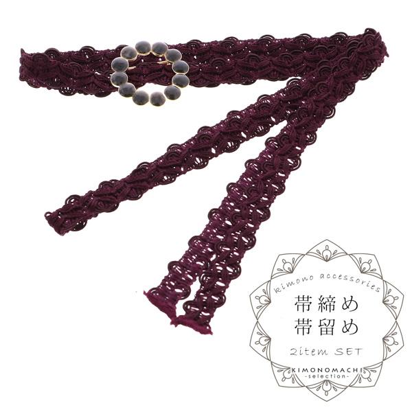 帯締め 帯留め 2点セット 「ワイン」 レース 帯〆 おびじめ 着物 浴衣 和装 和服 普段着 きもの カジュアル レトロ アンティーク 上品 洒落小物 【メール便不可】