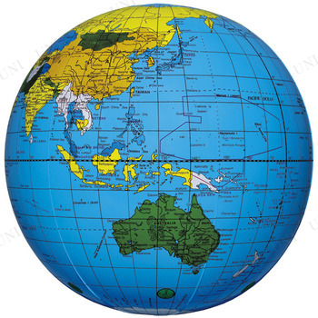 | 商品説明 | 世界中の地名や国名が英語で記されている地球儀のビニール製ボールです。お店やイベントの装飾品、またはお子様のお勉強用にどうぞ! ※地名や国名は規格当時のデータです、最新のものとは異なる場合があります ※本品は装飾用です。装飾以外の目的で使用しないで下さい ※浮き具やフロート代わりとして水上で使用しないで下さい |