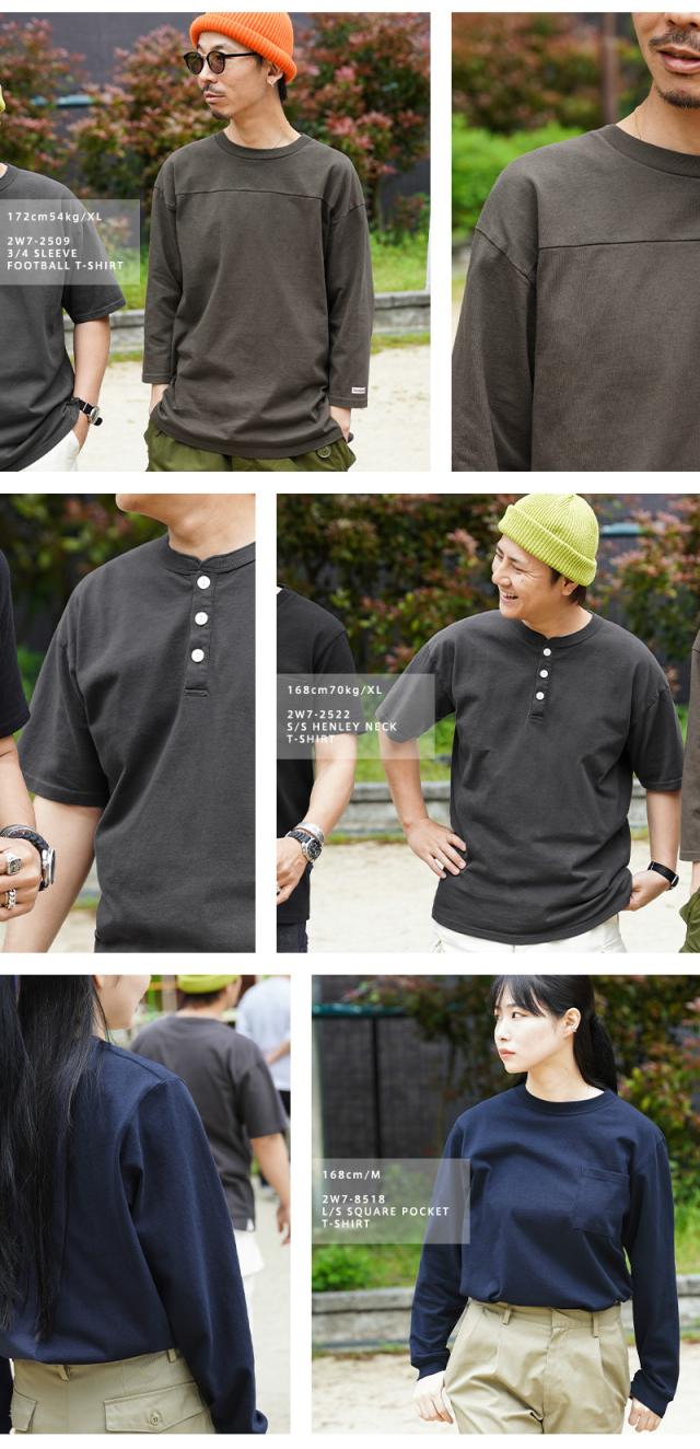 アメリカコットン特有のドライ感に肉厚で縫製強度の高いタフなボディは、着用回数を重ねるほどに体に馴染み雰囲気が増していくので育てる楽しみがある一枚。シンプルで着回しやすい無地ポケット付きタイプ。身幅、肩幅を大きくしたビッグシルエットで、ゆったりとしたトレンド感のある着こなしが可能です。シーンを選ばない定番のカラー展開でワークウェアとしてや、ミリタリー、アメカジスタイルにもマッチする優秀アイテムです。