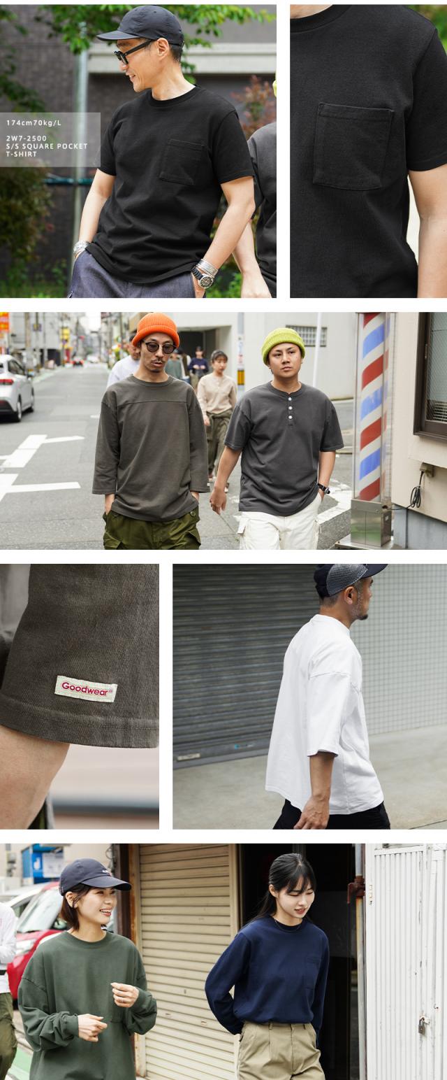 Goodwear グッドウェア 2W7-0502 USAコットン SUPER BIG ロングスリーブ ポケットTシャツ【T】|ロンT 長袖 メンズ カットソー アメカジ インナー ブランド おしゃれ ポケT 大きいサイズ 秋 冬 ギフト