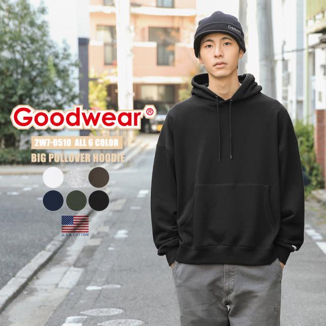 Goodwear グッドウェア 2W7-0510 USAコットン BIG プルオーバー パーカー【T】|スウェットパーカー メンズ トップス 綿100% コットン 12オンス ヘビーオンス ブランド おしゃれ ビッグシルエット 大きいサイズ 黒 白 グレー