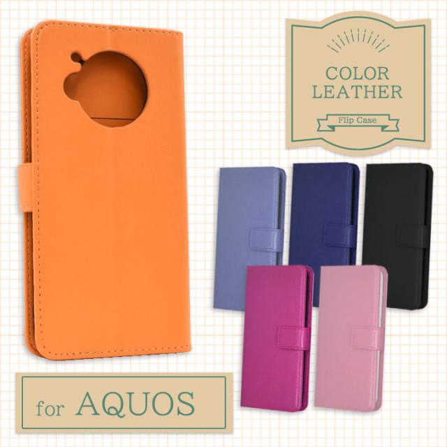AQUOSR7 SH-52C A202SH カラーレザー手帳型ケース カバー アクオスアール7 ブラック ブルー ライトブルー オレンジ ピンク レッド ビビットピンク メール便送料無料