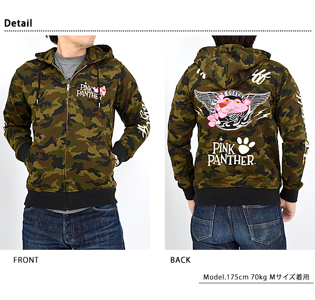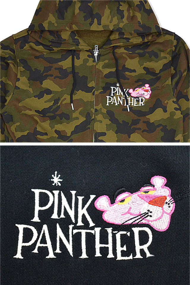 背中にはピンクパンサーのアイコンが大胆に刺繍されています。