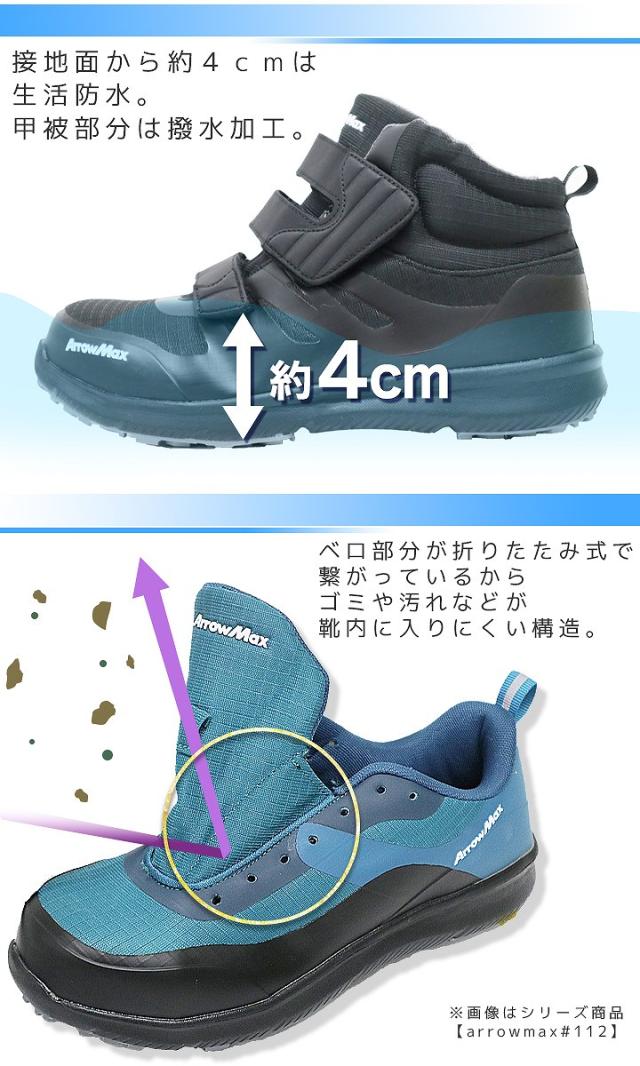 安全靴 ハイット 防水 撥水加工 アローマックス #113 耐滑 鋼製先芯入り スニーカー 作業靴 おしゃれ かっこいい 福山ゴム