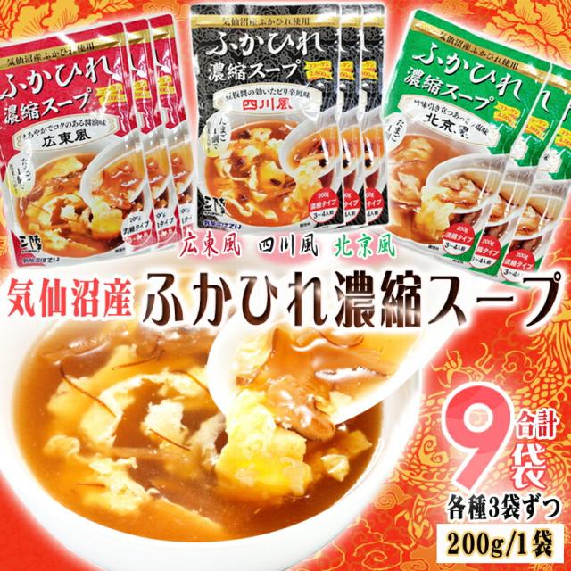 ふかひれ 濃縮 スープ 3種9袋 詰め合わせセット 広東風 四川風 北京風 各200g×3袋 気仙沼産 豪華 送料無料 [ほてい濃縮スープ3種×3袋] 即送