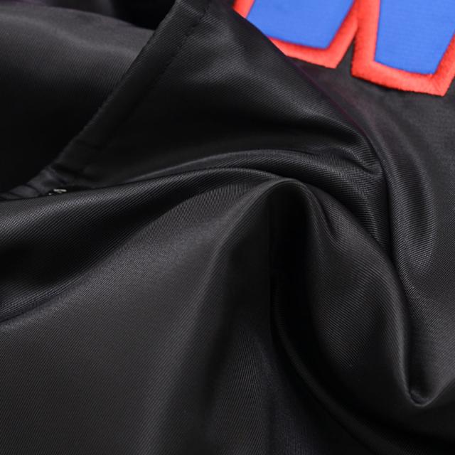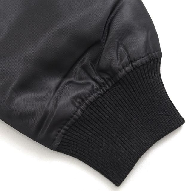 フロントは刺繍でブランドロゴを配置したシンプルなカレッジスタジャン。