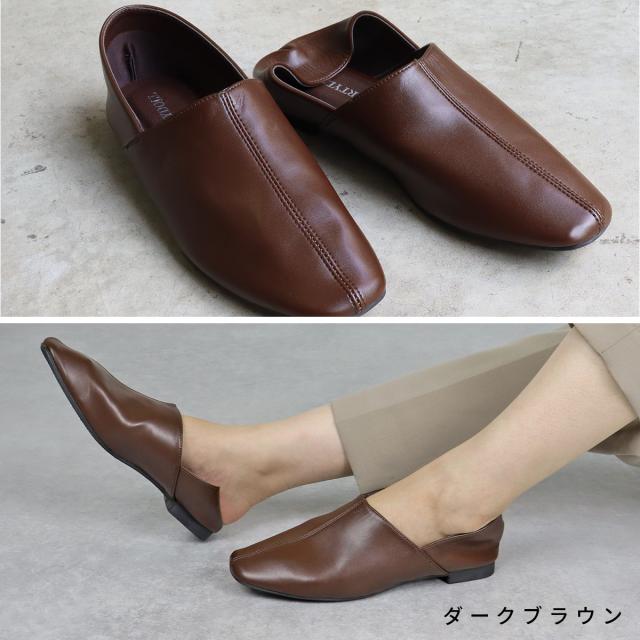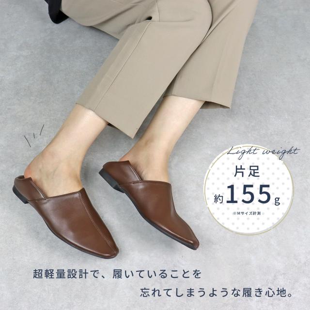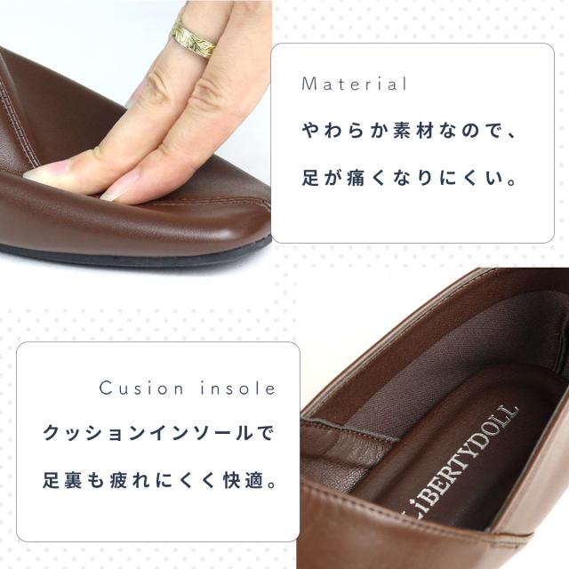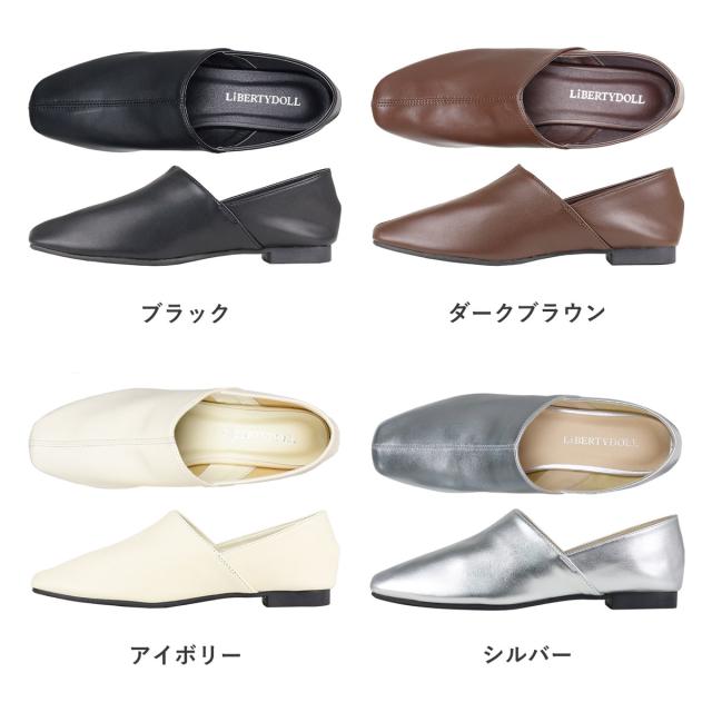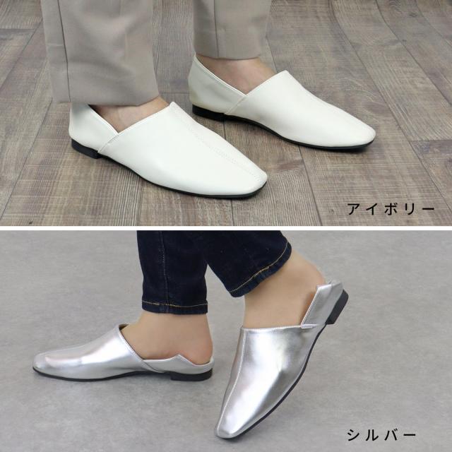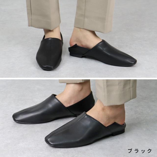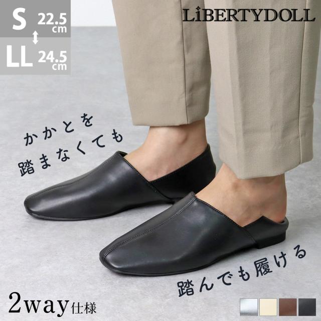 バブーシュ スクエアトゥ フラットシューズ 2way レディース 1cmヒール No.3035 22.5cm〜24.5cm 黒 リバティードール