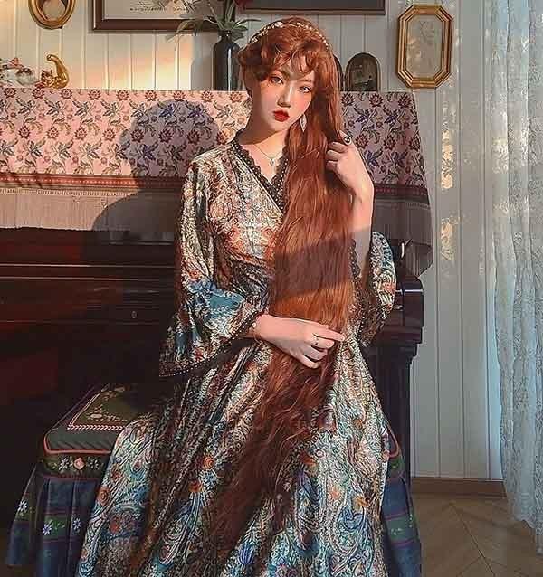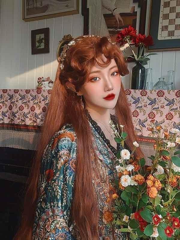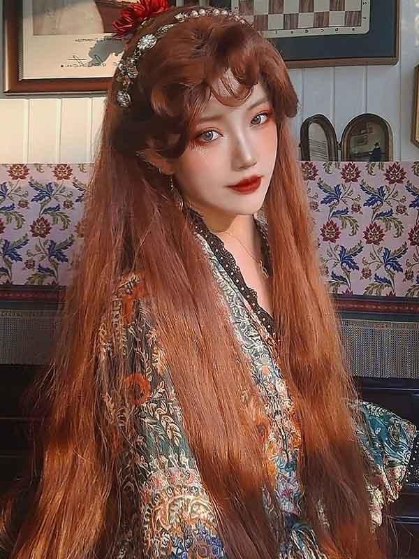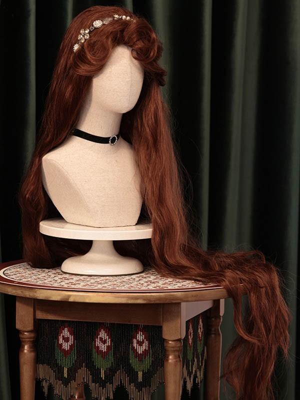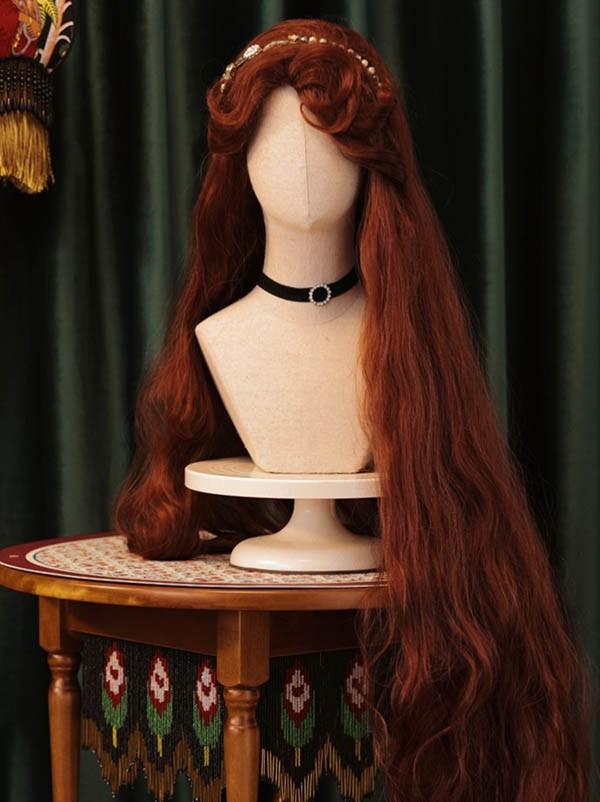 中世の貴族風 茶髪 巻き毛 フルウィッグ かつら 女性 長髪 超ロング ロング丈 ロングウィッグ ロングヘア ロリータ lolita 前髪あり 自然