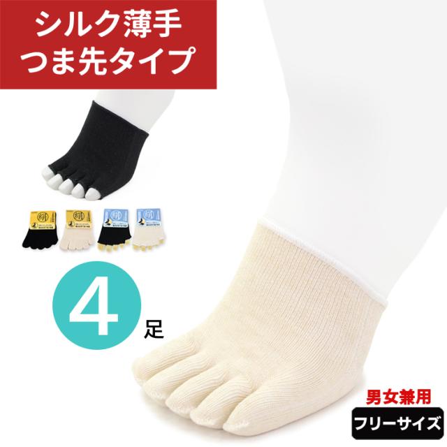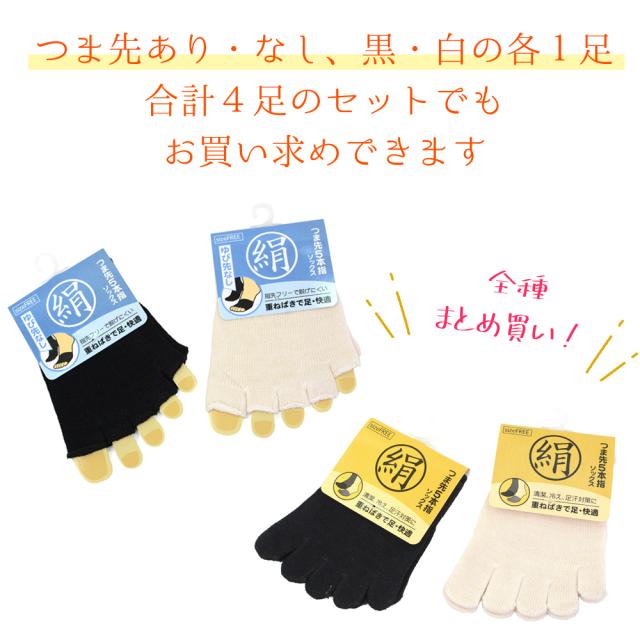 シルク 絹混 5本指ソックス 4足セット 五本指 靴下 メンズ レディース つま先 あり なし 重ね履き 【メール便送料無料】 パンプスイン 5本指健康ソックス 黒 白 清潔 防臭 冷え 足汗対策 外反母趾 予防 冷暖房対策 男女兼用